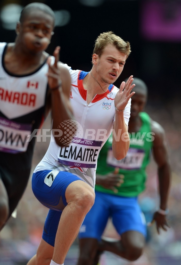 また欧州からボルトに挑戦するフランスのクリストフ・ルメートル(Christophe Lemaitre)は、第2組首位の20秒34を記録し、準決勝へ進んだ。(c)AFP