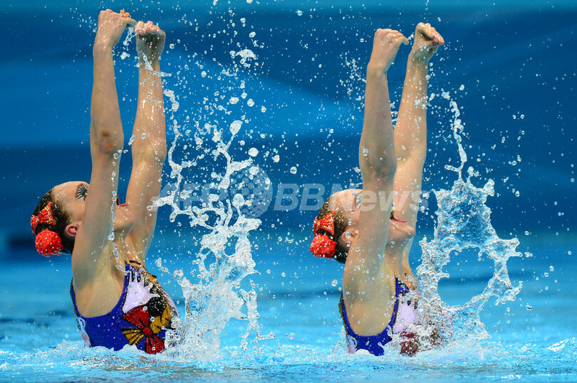 【8月8日 AFP】ロンドン五輪は7日、アクアティクス・センター(Aquatics Centre)でシンクロナイズドスイミングのデュエットフリールーティン(FR)決勝が行われ、ナターリア・イシェンコ(Natalia Ishchenko)/スベトラナ・ロマシナ(Svetlana Romashina)組が、ロシア勢としては五輪4大会連続となる金メダルを獲得した。
