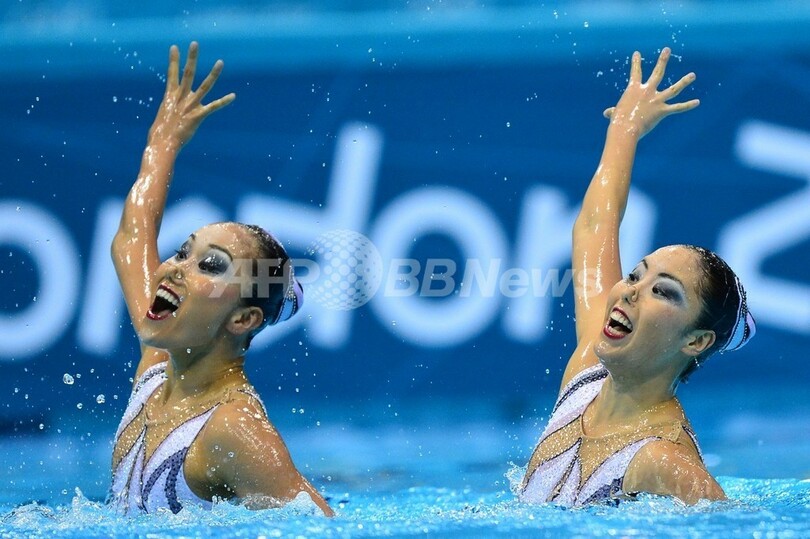 【8月8日 AFP】ロンドン五輪は7日、アクアティクス・センター(Aquatics Centre)でシンクロナイズドスイミングのデュエットフリールーティン(FR)決勝が行われ、乾友紀子(Yukiko Inui)/小林千紗(Chisa Kobayashi)組は合計186.740点で5位に終わった。(c)AFP