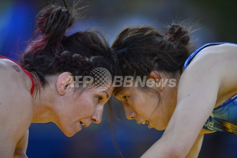 トーニャ・バービークと対戦する吉田沙保里(2012年8月9日撮影)。(c)AFP/MARWAN NAAMANI