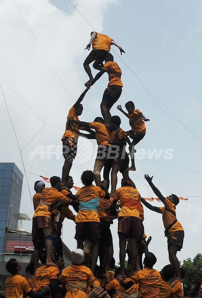 ニュース ライフ こぼれ話 クリシュナ神を祝うジャンマシュタミ祭、圧巻の人間ピラミッド インド 2012年8月11日 17:30 発信地:ムンバイ/インド [ アジア・オセアニア インド ] このニュースをシェア ‹ › ❮ 8/10 ❯ インドのムンバイ(Mumbai)で10日、ヒンズー教のクリシュナ神の生誕を祝う祭り「ジャンマシュタミ(Janmashtami)」が行われた。祭りのハイライトは、ヒンズー教徒の男たちによる人間ピラミッドだ。空中に高く吊るされたダヒハンディと呼ばれるつぼに達する人間ピラミッドを組み、このつぼを割れば参加者に賞金が与えられる(2012年8月10日撮影)。(c)AFP/Punit PARANJPE 画像作成中 ! 【8月11日 AFP】インドのムンバイ(Mumbai)で10日、ヒンズー教のクリシュナ神の生誕を祝う祭り「ジャンマシュタミ(Janmashtami)」が行われた。祭りのハイライトは、ヒンズー教徒の男たちによる人間ピラミッドだ。空中に高く吊るされたダヒハンディと呼ばれるつぼに達する人間ピラミッドを組み、このつぼを割れば参加者に賞金が与えられる。(c)AFP ライフ 一覧へ> メディア・報道関係・法人の方向け 写真・動画 購入のお問合せ>