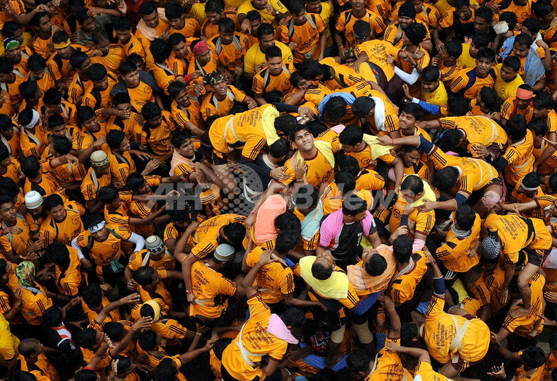 ニュース ライフ こぼれ話 クリシュナ神を祝うジャンマシュタミ祭、圧巻の人間ピラミッド インド 2012年8月11日 17:30 発信地:ムンバイ/インド [ アジア・オセアニア インド ] このニュースをシェア ‹ › ❮ 7/10 ❯ インドのムンバイ(Mumbai)で10日、ヒンズー教のクリシュナ神の生誕を祝う祭り「ジャンマシュタミ(Janmashtami)」が行われた。祭りのハイライトは、ヒンズー教徒の男たちによる人間ピラミッドだ。空中に高く吊るされたダヒハンディと呼ばれるつぼに達する人間ピラミッドを組み、このつぼを割れば参加者に賞金が与えられる(2012年8月10日撮影)。(c)AFP/Punit PARANJPE 画像作成中 ! 【8月11日 AFP】インドのムンバイ(Mumbai)で10日、ヒンズー教のクリシュナ神の生誕を祝う祭り「ジャンマシュタミ(Janmashtami)」が行われた。祭りのハイライトは、ヒンズー教徒の男たちによる人間ピラミッドだ。空中に高く吊るされたダヒハンディと呼ばれるつぼに達する人間ピラミッドを組み、このつぼを割れば参加者に賞金が与えられる。(c)AFP ライフ 一覧へ> メディア・報道関係・法人の方向け 写真・動画 購入のお問合せ>