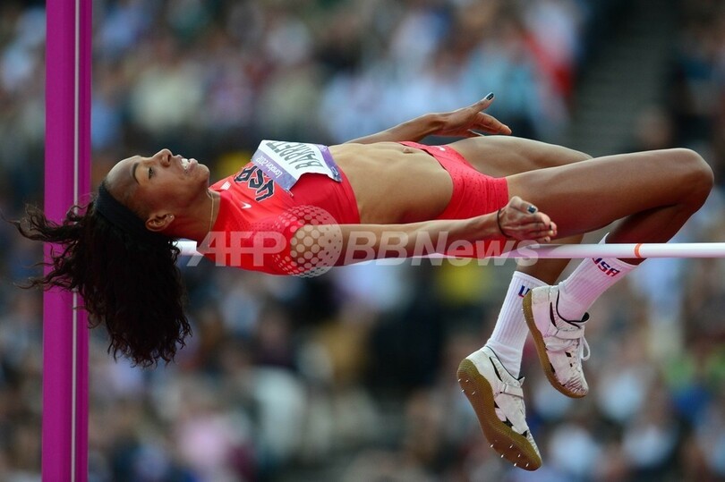 試技に臨む米国のブリジッタ・バレット(Brigetta Barrett、2012年8月11日撮影)。(c)AFP/FRANCK FIFE