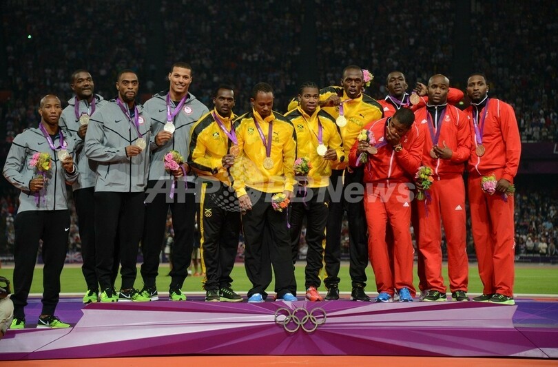 【8月12日 AFP】ロンドン五輪は11日、オリンピックスタジアム(Olympic Stadium)で陸上男子4×100メートルリレー決勝が行われ、ジャマイカが世界新記録の36秒84で金メダルを獲得した。