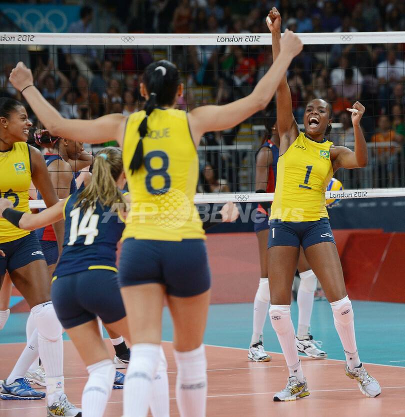 【8月12日 AFP】ロンドン五輪は11日、アールズコート(Earls Court)で女子バレーボール決勝が行われ、ブラジルが3-1(11-25、25-17、25-20、25-17)で米国を破り、2大会連続で金メダルを獲得した。 同日行われた3位決定戦では、日本は3-0(25-22、26-24、25-21)で韓国を下し、銅メダルを獲得している。(c)AFP