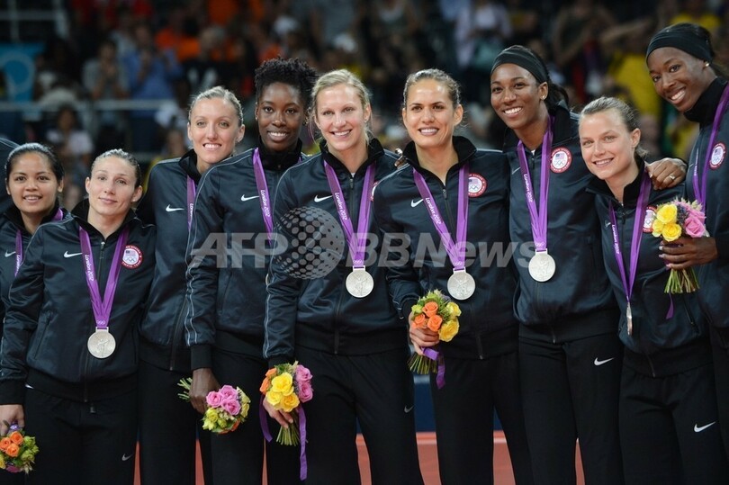 銀メダルを獲得し、表彰式に臨む米国の選手(2012年8月11日撮影)。(c)AFP/KIRILL KUDRYAVTSEV