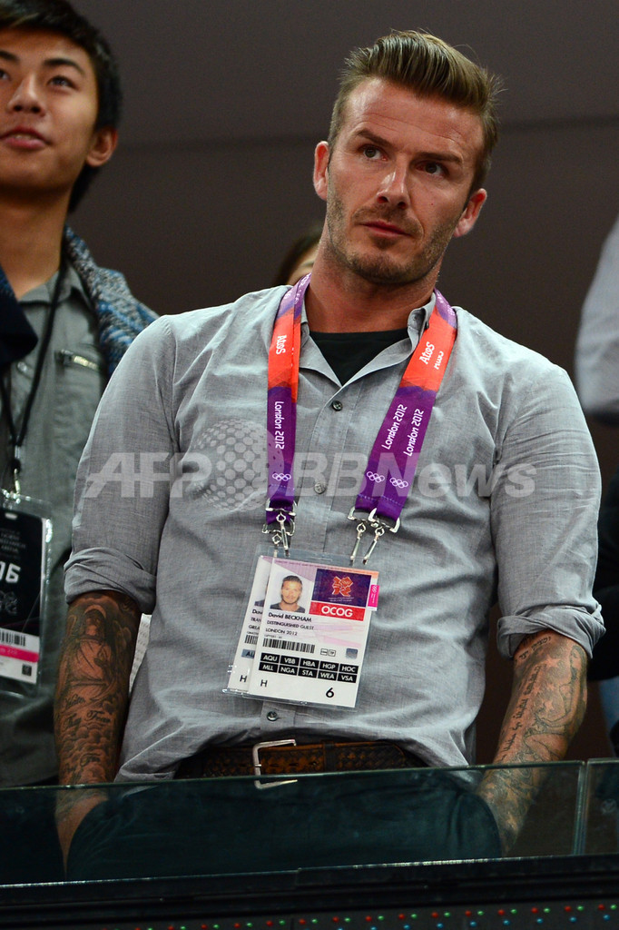 試合を観戦するデビッド・ベッカム(David Beckham、2012年8月12日撮影)。(c)AFP/MARTIN BUREAU