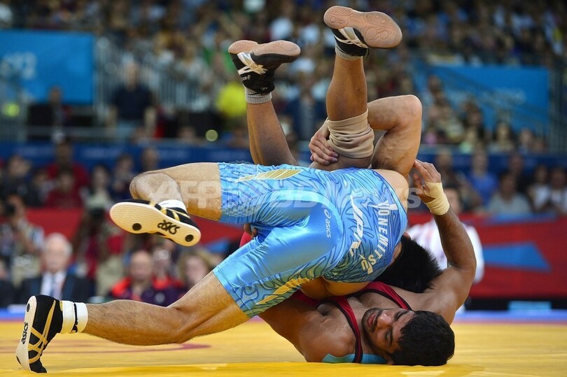 【8月12日 AFP】ロンドン五輪は12日、エクセル(ExCeL London)でレスリング男子フリースタイル66キロ級決勝が行われ、日本の米満達弘(Tatsuhiro Yonemitsu)がインドのスシル・クマール(Sushil Kumar)に勝利し、金メダルを獲得した。