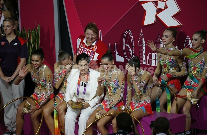 【8月13日 AFP】ロンドン五輪は12日、ウェンブリー・アリーナ(Wembley Arena)で新体操団体決勝が行われ、ロシアが合計57.000点を記録し、4大会連続の金メダルを獲得した。