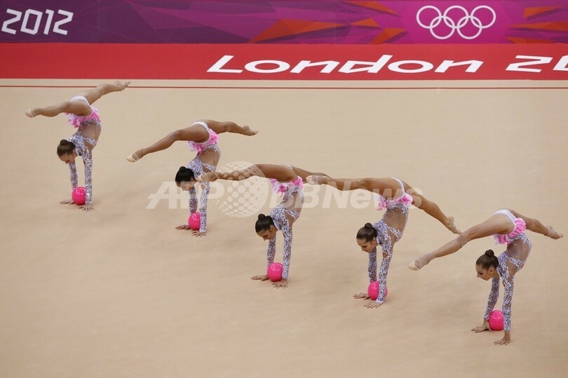 【8月13日 AFP】ロンドン五輪は12日、ウェンブリー・アリーナ(Wembley Arena)で新体操団体決勝が行われ、ロシアが合計57.000点を記録し、4大会連続の金メダルを獲得した。