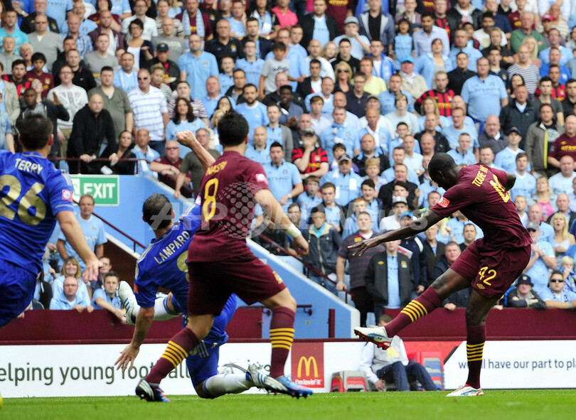 シティは前半40分に欧州チャンピオンズリーグ2011-12(UEFA Champions League 2011-12)王者チェルシーのフェルナンド・トーレス(Fernando Torres)に先制点を許した。しかし前半終了間際にはアレクサンダル・コラロフ(Aleksandar Kolarov)へのファウルでチェルシーのブラニスラフ・イヴァノヴィッチ(Branislav Ivanovic)が退場処分となり、数的有利で前半を折り返した。