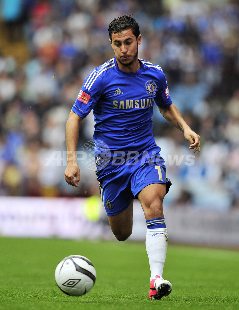 ドリブルするチェルシーのエデン・アザール(Eden Hazard、2012年8月12日撮影)。(c)AFP/GLYN KIRK