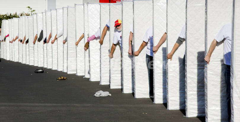 ニュース ライフ こぼれ話 「マットレス・ドミノ倒し」で世界記録、ドイツ 2012年8月13日 11:21 発信地:グリューンダウ・リーブロス/ドイツ [ ヨーロッパ ドイツ ] このニュースをシェア ‹ › ❮ 2/3 ❯ 独グリューンダウ・リーブロス(Gruendau-Lieblos)で、マットレスを使ったドミノ倒しの世界記録に挑戦する人びと(2012年8月12日撮影)。(c)AFP/FRANK RUMPENHORST 画像作成中 ! 【8月13日 AFP】ドイツ西部グリューンダウ・リーブロス(Gruendau-Lieblos)で12日、マットレスを使ったドミノ倒しでギネス世界記録(Guinness World Record)への挑戦が行われた。それぞれマットレスを持った1150人が2.4キロメートルの列を作って順繰りに倒れてゆき、挑戦は成功した。地元報道によると、中国によるこれまでの世界記録を見事破ったという。(c)AFP ライフ 一覧へ> メディア・報道関係・法人の方向け 写真・動画 購入のお問合せ>