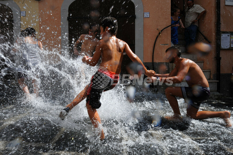 ニュース ライフ こぼれ話 川の水を流して村の道路を一掃!イタリア伝統の水祭り 2012年8月13日 12:32 発信地:カンパーニャ/イタリア [ ヨーロッパ イタリア ] このニュースをシェア ‹ › ❮ 3/8 ❯ イタリア南部のカンパーニャ(Campagna)村で11日、近くを流れるテンザ川(Tenza River)の水を引き込んで村内の道路に流す伝統行事「ラ・キエナ(La Chiena)」が行われた。起源は13世紀に路上に放置された動物の排せつ物を川の水で洗い流したことだというこの祭り、現在では住民同士が水を掛け合う祭りとして続いている。(2012年8月11日撮影)。(c)AFP/MARIO LAPORTA 画像作成中 ! 【8月13日 AFP】イタリア南部のカンパーニャ(Campagna)村で11日、近くを流れるテンザ川(Tenza River)の水を引き込んで村内の道路に流す伝統行事「ラ・キエナ(La Chiena)」が行われた。起源は13世紀に路上に放置された動物の排せつ物を川の水で洗い流したことだというこの祭り、現在では住民同士が水を掛け合う祭りとして続いている。(c)AFP ライフ 一覧へ> メディア・報道関係・法人の方向け 写真・動画 購入のお問合せ>