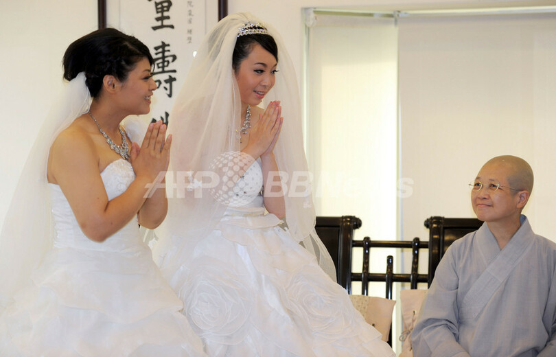 【8月13日 AFP】台湾で11日、同国初となる同性による仏式結婚式が北部の桃園(Taoyuan)で執り行われた。同性愛者権利団体らは、台湾が同性婚の合法化に向けてアジアで初めてかじを切ることに期待を寄せている。