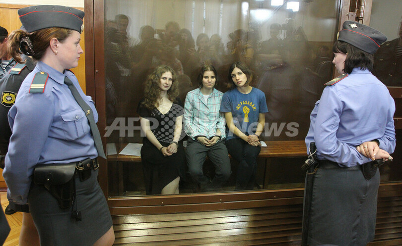 【8月18日 AFP】露モスクワ(Moscow)の裁判所は17日、ロシア正教会の大聖堂でウラジーミル・プーチン(Vladimir Putin)露大統領を批判する歌を演奏し、フーリガン行為の罪に問われたフェミニスト・パンクバンド「プッシー・ライオット(Pussy Riot)」の3人に対し、禁錮2年の実刑判決を言い渡した。