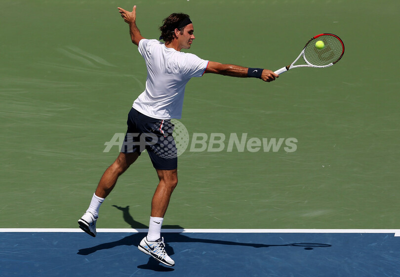 リターンを打つロジャー・フェデラー(2012年8月19日撮影)。(c)AFP/Getty Images/Nick Laham