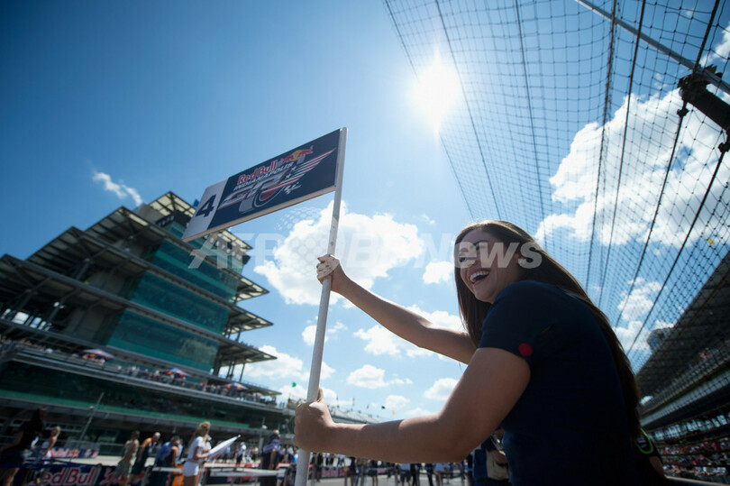 笑顔を見せるレースクイーン(2012年8月19日撮影)。(c)AFP/Getty Images/Mirco Lazzari