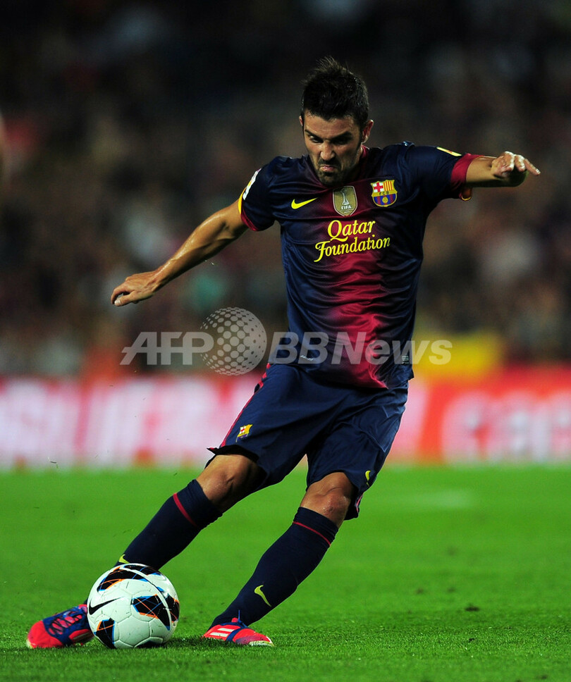 ボールを蹴るFCバルセロナのダビド・ビジャ(David Villa、2012年8月20日撮影)。(c)AFP/LLUIS GENE
