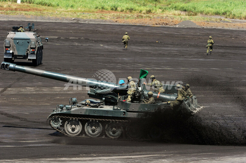 【8月21日 AFP】陸上自衛隊(Ground Self-Defense Force)が毎年行う「富士総合火力演習」の予行が21日、静岡県御殿場市にある東富士演習場で行われた。富士山(Mt. Fuji)のふもとで実施されるこの演習には、隊員約2400人、戦車・装甲車両80両、航空機・ヘリコプター30機が参加する。(c)AFP