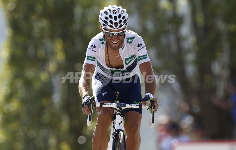 第6ステージに臨むモビスター・チーム(Movistar Team)のアレハンドロ・バルベルデ(Alejandro Valverde、2012年8月23日撮影)。(c)AFP/JOSE JORDAN