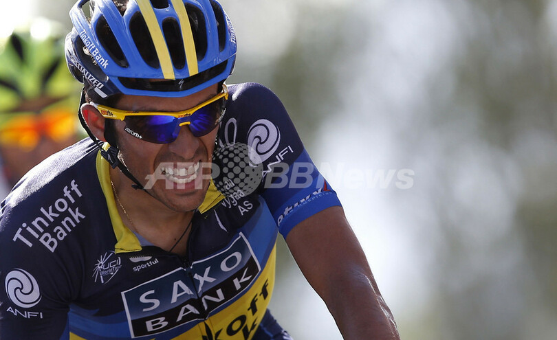 第6ステージに臨むチーム・サクソバンク(Team Saxo Bank)のアルベルト・コンタドール(Alberto Contador、2012年8月23日撮影)。(c)AFP/JOSE JORDAN