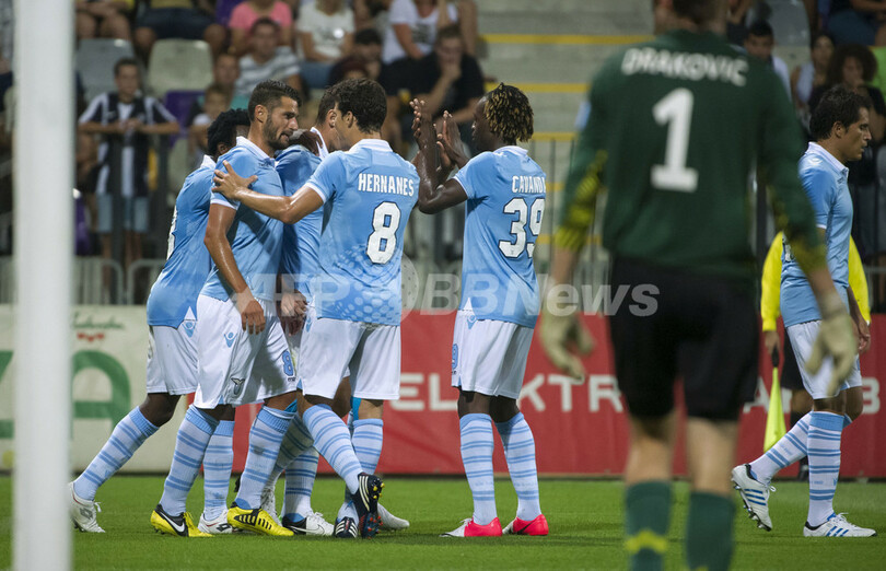 スポーツ サッカー ラツィオがアウェイで先勝、欧州リーグプレーオフ 2012年8月24日 10:06 発信地:パリ/フランス [ ヨーロッパ フランス ] このニュースをシェア ‹ › ❮ 2/7 ❯ サッカーヨーロッパリーグ2012-13(UEFA Europa League 2012-13)は23日、プレーオフ第1戦の試合が各地で行われ、ラツィオ(SS Lazio)は2-0でムラ(ND Mura 05)に先勝した。得点を喜ぶラツィオの選手(2012年8月23日撮影)。(c)AFP/JURE MAKOVEC 画像作成中 ! 【8月24日 AFP】サッカーヨーロッパリーグ2012-13(UEFA Europa League 2012-13)は23日、プレーオフ第1戦の試合が各地で行われ、ラツィオ(SS Lazio)は2-0でムラ(ND Mura 05)に先勝した。(c)AFP サッカー 一覧へ> メディア・報道関係・法人の方向け 写真・動画 購入のお問合せ>