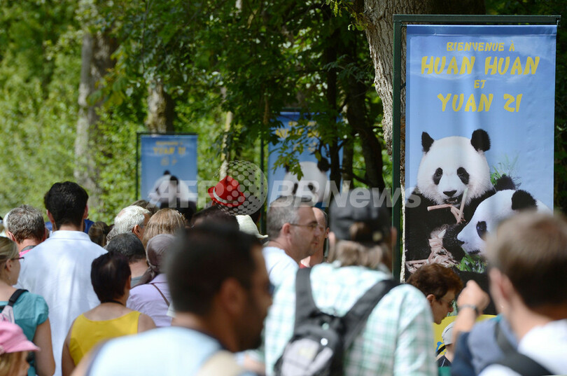 【8月26日 AFP】フランス中部サンテニャン(Saint-Aignan)のボーバル(Beauval)動物園では、氷のおやつをほおばるジャイアントパンダ「歓歓(Huan Huan)」と「圓仔(Yuan Zi)」の姿を来園者が楽しんでいる。2頭は前年冬に中国から貸与された。(c)AFP