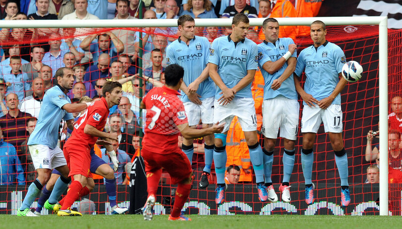 しかし同点の時間は長く続かず、リバプールは同21分、シティのジャック・ロドウェル(Jack Rodwell)のハンドで得たゴール前約18メートルのフリーキック(FK)からルイス・スアレス(Luis Suarez)が壁を巻くシュートをゴールキーパー(GK)ジョー・ハート(Joe Hart)には防ぎようのない場所に決め、リードを奪った。