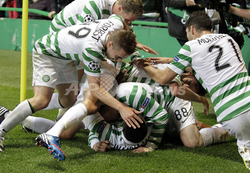 第1戦で2-0と先勝していたセルティックは、前半30分にゲイリー・フーパー(Gary Hooper)のゴールで先制しすると、後半43分にはビクター・ワニアマ(Victor Wanyama)が追加点を挙げ、4年ぶりのグループリーグ進出を果たした。(c)AFP
