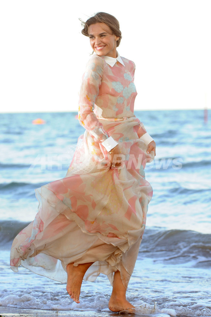 開幕に先駆け28日には、ベネチアの海岸でフォトコールが行われ、花柄プリントのロングドレスに身を包んだカシアが出席した。(c)AFP