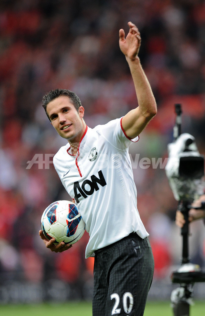 続けてファン・ペルシーは後半ロスタイム、ナニ(Luis Cunha aka Nani)のコーナーキックからヘディングで決勝点を奪い、自身のリーグ通算100得点目でチームを勝利に導いた。(c)AFP