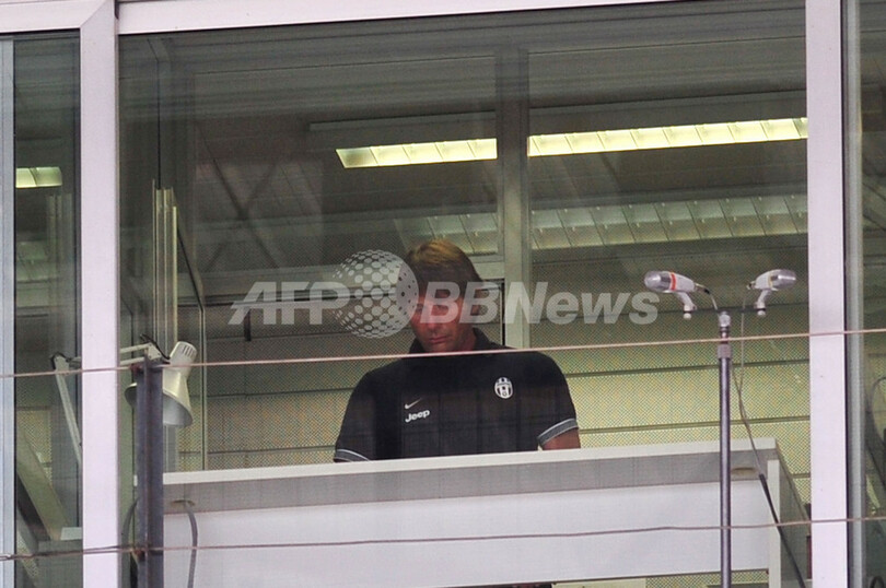 スタンドに姿を見せたユベントスのアントニオ・コンテ(Antonio Conte)監督(2012年9月2日撮影)。(c)AFP/GIUSEPPE CACACE