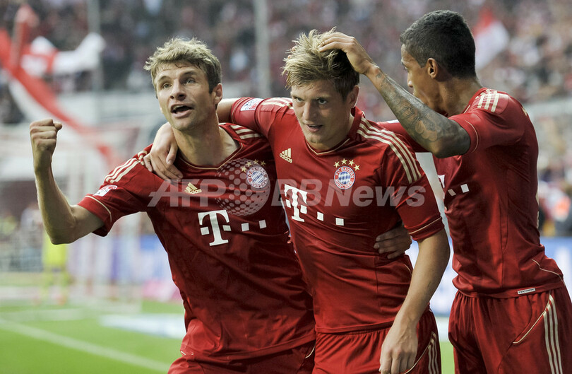 バイエルンは同32分、ミュラーがシュツットガルトゴールキーパー(GK)のスヴェン・ウルライヒ(Sven Ulreich)に弾かれたミドルシュートのこぼれ球を自ら詰めて同点にすると、その直後にはミュラーと同じドイツ代表のトニ・クロース(Toni Kroos)が強烈なシュートで逆転ゴールを決めた。