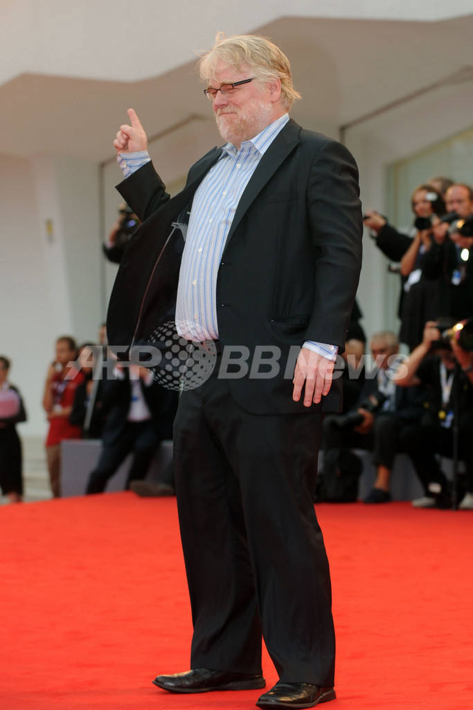 写真は、レッドカーペットに登場したホフマン(2012年9月1日撮影)。(c)AFP/TIZIANA FABI