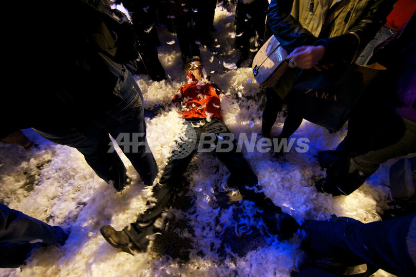 五輪イヤーを記念してロンドン市内の各地で開かれている芸術文化イベント「London 2012 Festival」の一環で、ピカデリー広場では「ピカデリーサーカス・サーカス」と題されたイベントに世界各国から250人のパフォーマーが集結。空中ブランコ、フラフープ芸、綱渡りなどを披露した。(c)AFP