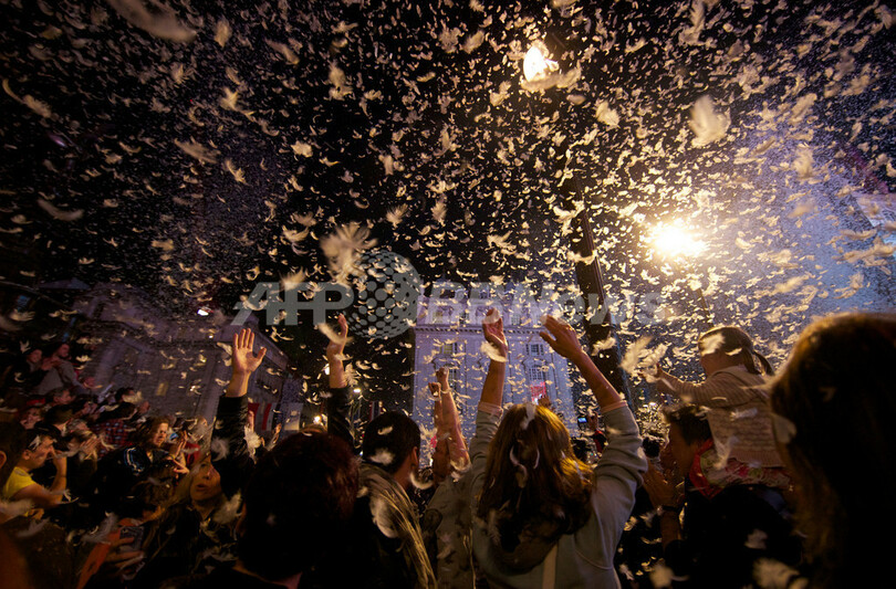 五輪イヤーを記念してロンドン市内の各地で開かれている芸術文化イベント「London 2012 Festival」の一環で、ピカデリー広場では「ピカデリーサーカス・サーカス」と題されたイベントに世界各国から250人のパフォーマーが集結。空中ブランコ、フラフープ芸、綱渡りなどを披露した。(c)AFP