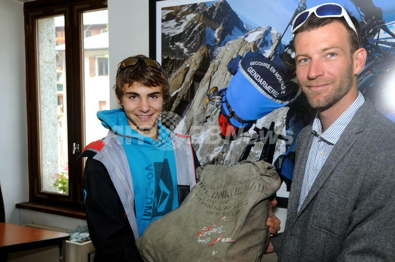 その墜落現場そばで前月21日、山岳救助隊員らがインド政府の外交行嚢を発見。モンブラン山麓の町シャモニー(Chamonix)で3日、歴史的な外交文書袋は無事に地元警察から在パリ(Paris)インド大使館の2等書記官へと手渡された。