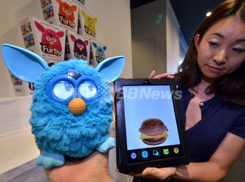 ファービーは1998年にデビューした米玩具大手ハスブロ(Hasbro)の電子ペット。新型のファービーは、スマートフォン(多機能携帯電話)iPhoneやタブレット端末iPadを使ってごはんを与えたり、会話をしたりして世話をすることができる。日本ではタカラトミー(Takara Tomy)が来月から販売する。(c)AFP
