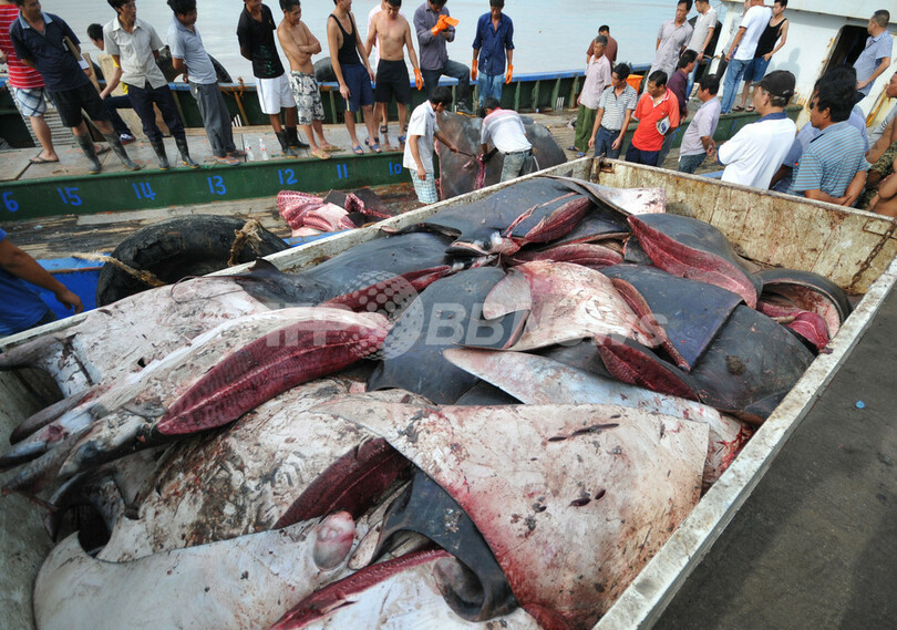 ニュース ライフ 全長8メートルの巨大エイ、中国で水揚げ 2012年9月5日 14:35 発信地:台州/中国 [ 中国・台湾 中国 ] このニュースをシェア ‹ › ❮ 3/8 ❯ 中国浙江(Zhejiang)省台州(Taizhou)近海で、重さ1000キログラム、全長8メートルの巨大なマンタ(オニイトマキエイ)が水揚げされた。3日には台州で漁師たちが解体し、地元市場に送られた(2012年9月3日撮影)。(c)AFP 画像作成中 ! 【9月5日 AFP】中国浙江(Zhejiang)省台州(Taizhou)近海で、重さ1000キログラム、全長8メートルの巨大なマンタ(オニイトマキエイ)が水揚げされた。3日には台州で漁師たちが解体し、地元市場に送られた。(c)AFP ライフ 一覧へ> メディア・報道関係・法人の方向け 写真・動画 購入のお問合せ>
