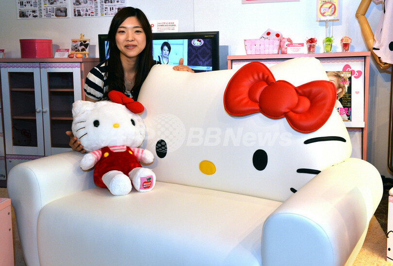 都内にあるサンリオ(Sanrio)本社には、人気キャラクター「ハローキティ(Hello Kitty)」の関連製品が数多く並んでいる。写真はハローキティの形をした手作りソファ。10月から価格20万円で注文を受け付ける(2012年9月5日撮影)。(c)AFP/Yoshikazu TSUNO