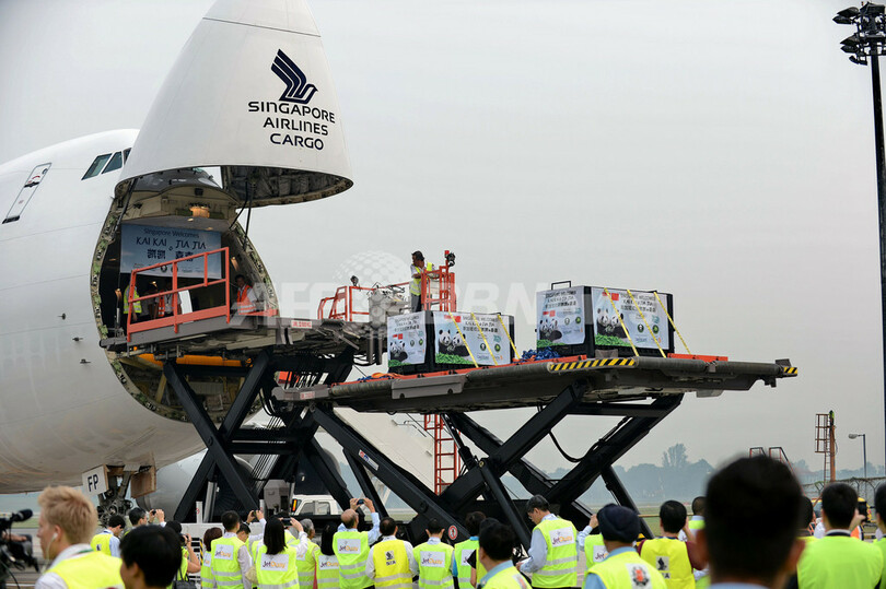 【9月7日 AFP】シンガポールに6日、中国から2頭のジャイアントパンダが到着し、人々の熱い歓迎を受けた。 5歳の雄パンダ「凱凱(カイカイ、Kai Kai)」と4歳の雌パンダ「嘉嘉(ジアジア、Jia Jia)」は、両国の国交樹立20年を記念し、中国から10年間貸与される。検疫期間を経て、シンガポール動物園(Singapore Zoo)に新設された飼育施設で12月から一般公開される予定だ。 貸与期間内での2世誕生に期待をかけるシンガポール政府は、同国の蒸し暑い熱帯気候の中でも2頭が繁殖をしやすいよう、気温などを調節できる飼育施設を数百万ドル(数億円)を掛けて新設した。 シンガポールは、1994年に中国が開始した貸与制度でパンダを借り受けた9番目の国となる。アジア太平洋諸国ではタイ、日本、オーストラリアに次いで4番目。香港など他の場所には別の制度を通じて貸与されている。(c)AFP/Philip Lim