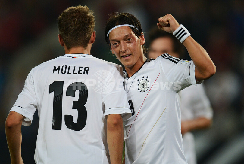 ドイツは後半、スペイン1部リーグのレアル・マドリード(Real Madrid)に所属するメスト・エジル(Mesut Ozil)が2得点を挙げる活躍を見せ、チームを救った。