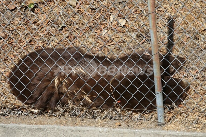 【9月10日 AFP】米カリフォルニア(California)州ロサンゼルス(Los Angeles)近郊の住宅地に9日、クマが出没する騒ぎがあった。クマは成体のアメリカグマで、州間高速道路210号線で最初に目撃された後モントローズ(Montrose)市内に迷い込んだが、カリフォルニア州魚類鳥獣部の担当官らが麻酔銃で眠らせて保護した。