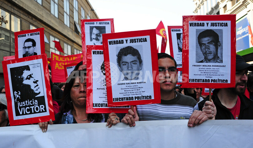 選挙で選ばれたサルバドル・アジェンデ(Salvador Allende)大統領を打倒した1973年9月11日の軍事クーデターで権力を握ったピノチェト司令官は1974年に大統領に就任。人権団体によると1973~90年の17年間の軍事独裁政権時代に3万7000人が投獄されて拷問を受け、3200人以上が死亡したか行方不明になった。ピノチェト元大統領はこの期間に犯した罪で有罪とされることなく、2006年に死去した。