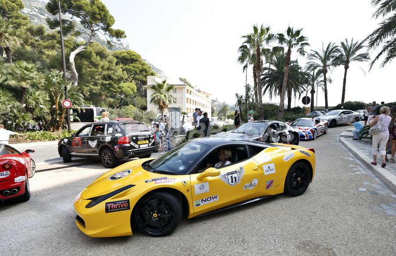 写真はモンテカルロ国営カジノ前からミラノに向けて出発する高級スポーツカー(2012年9月8日撮影)。(c)AFP/VALERY HACHE