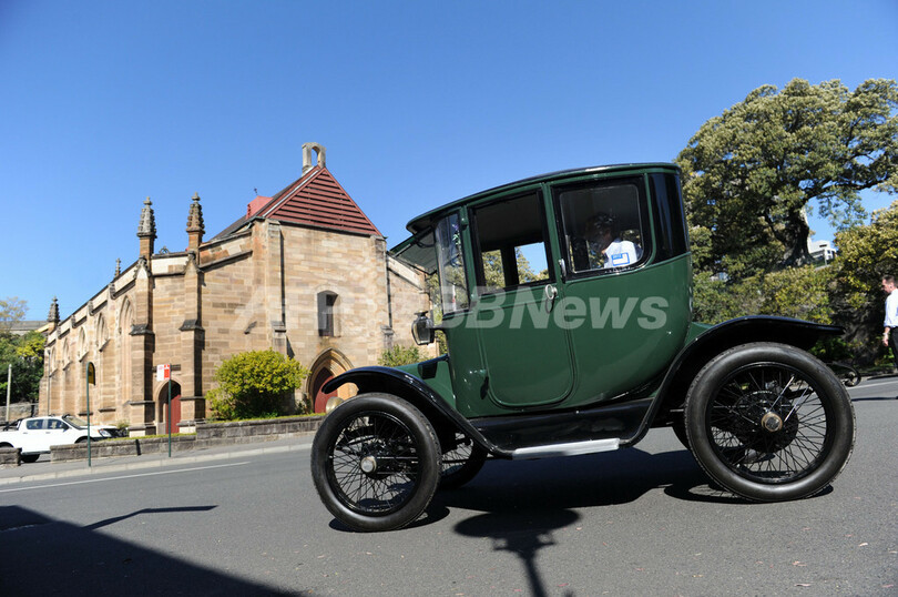 【9月10日 AFP】オーストラリア・シドニー(Sydney)で5日、1915年製の電気自動車「デトロイト(Detroit)」を運転するビンテージカー収集家のビル・ロイド(Bill Lloyd)さん(61)。元機械技師で弁理士のロイドさん曰く、「世界で最も有名なアンティーク電気自動車」だ。