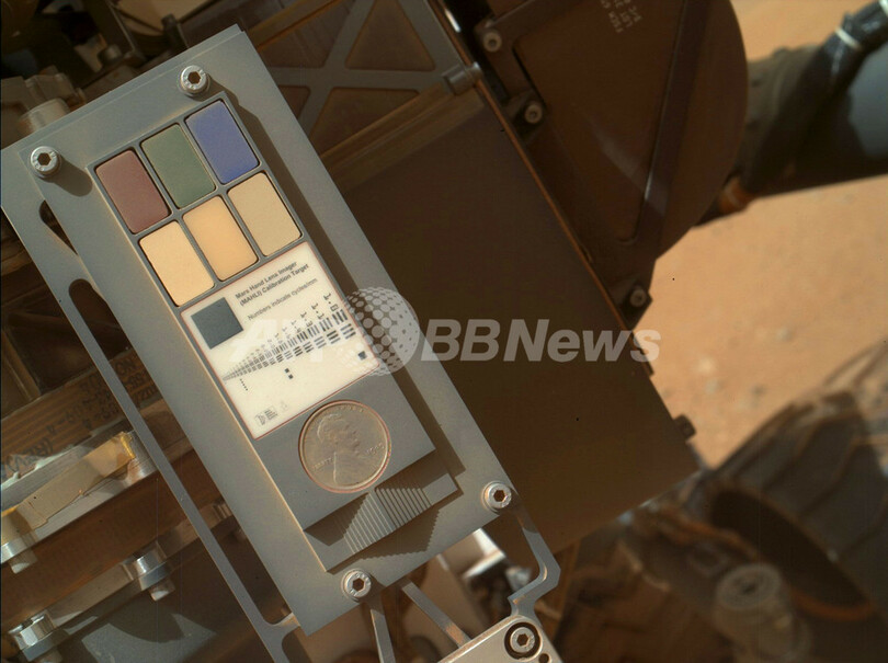 写真は、キュリオシティーのアームの根元部分にある較正用ターゲットの画像。アーム部分に取り付けられたMAHLIが9月9日に撮影した。