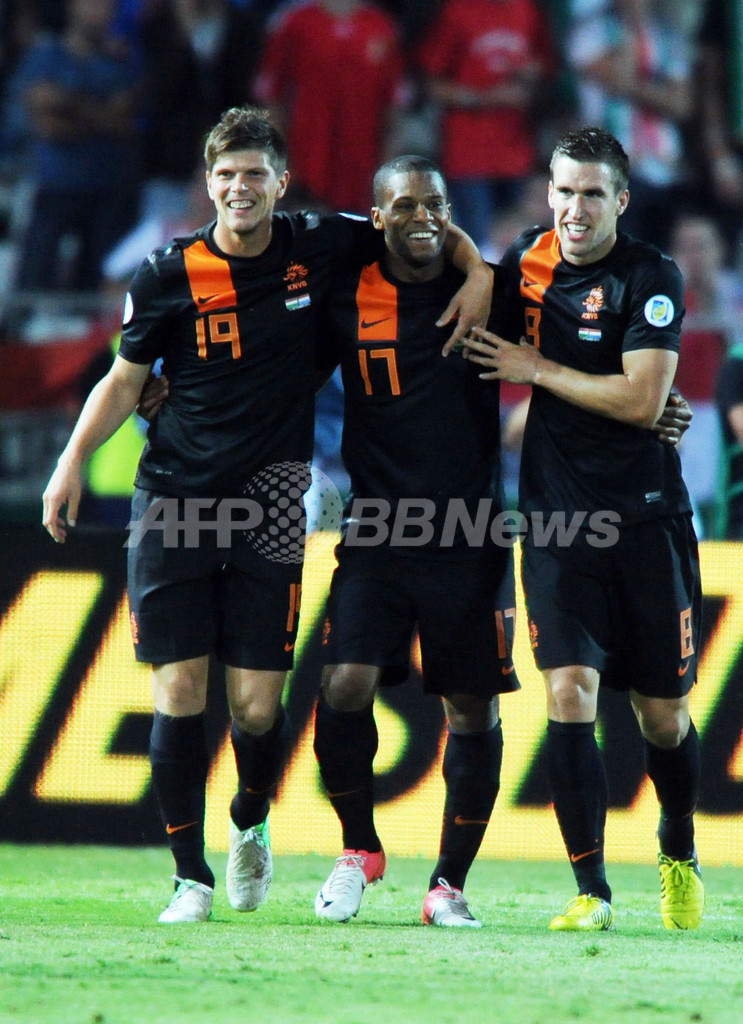 【9月12日 AFP】2014年サッカーW杯ブラジル大会(2014 World Cup)欧州予選は11日、各地で行われ、グループDのオランダは4-1でハンガリーに勝利した。(c)AFP