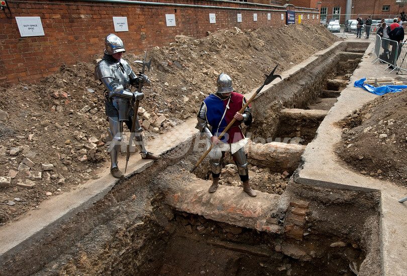 【9月13日 AFP】英レスター大学(University of Leicester)の考古学チームは12日、イングランド中部レスター(Leicester)市内の駐車場から、中世のイングランド王、リチャード3世(Richard III)の可能性がある人骨を発見したと発表した。歴史資料に書かれているリチャード3世の特徴と一致するという。人骨は保存状態が良く、現在DNA分析が進められている。